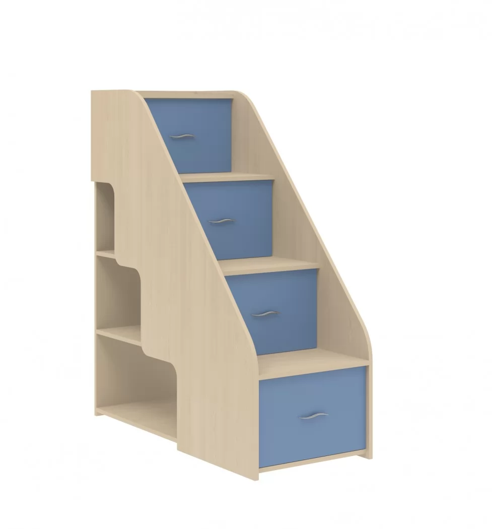 Лестница-комод "Дельта-23.2" – это функциональное дополнение к двухъярусным кроватям и модульным детским комнатам серии "Дельта". Этот компактный стильный предмет интерьера позволяет значительно сэкономить место в детской комнате, совмещая в себе функции двух элементов мебели. Надежные ступени оборудованы четырьмя вместительными выдвижными ящиками, которые можно использовать для хранения личных вещей, а также тремя открытыми полками.