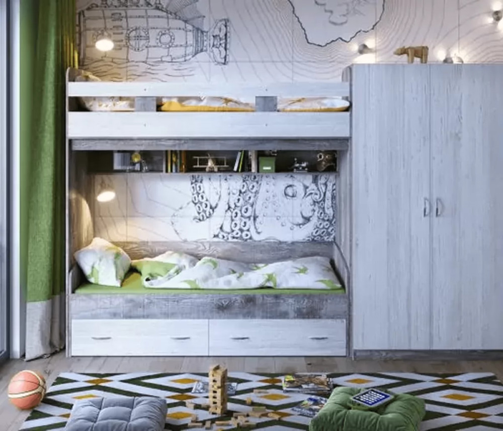 — В кровати снизу два выкатных ящика на колесных опорах, дно ящиков ЛДСП, глубина ящиков на всю ширину кровати, все это дает возможность загружать ящики не боясь, что сломается дно или погнуться направляющие;