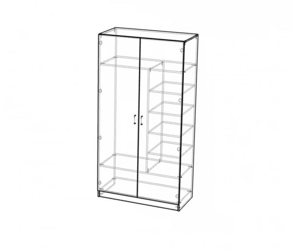 — В шкафу за дверцами с одной стороны 4 полки, с другой штанга;