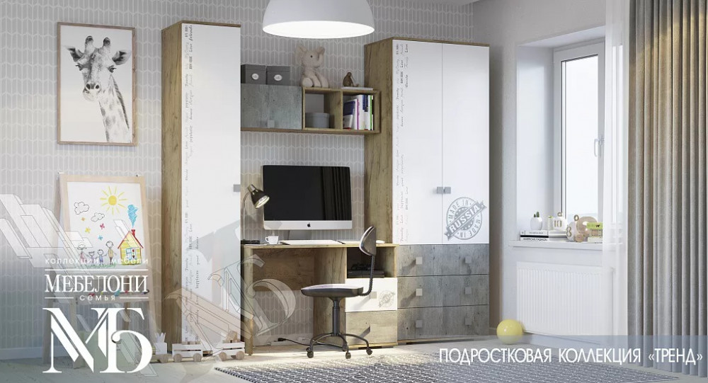 Подростковая коллекция спален «Тренд» универсальна, идеально подойдет как девушкам, так и молодым людям, идущих в ногу со временем и ценящих свободу творчества.