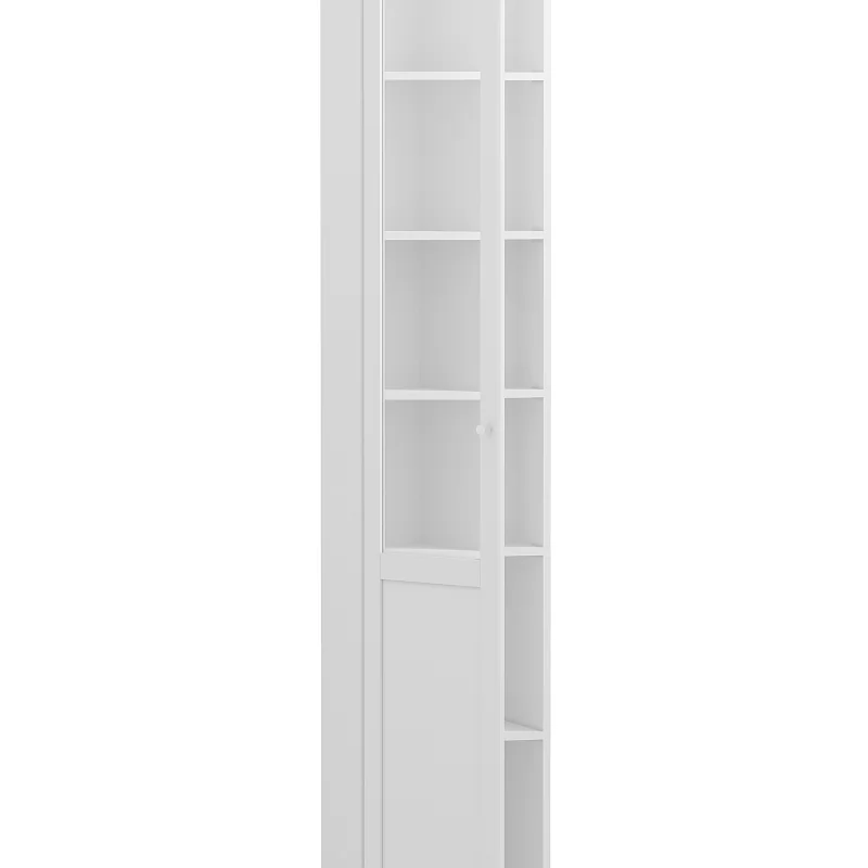 Книжный шкаф высотой 2107 мм поможет правильно организовать хранение книг и документов. Стеклянный фасад перенавешивается, это облегчит задачу при создании компоновки из шкафов в зависимости от планировки. За стеклянным фасадом из закаленного прозрачного стекла регулируемые по высоте полки из ЛДСП, что позволит разместить литературу различного формата. Книжный шкаф обязательно крепить к стене!