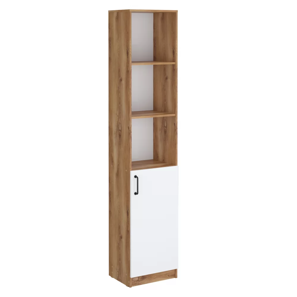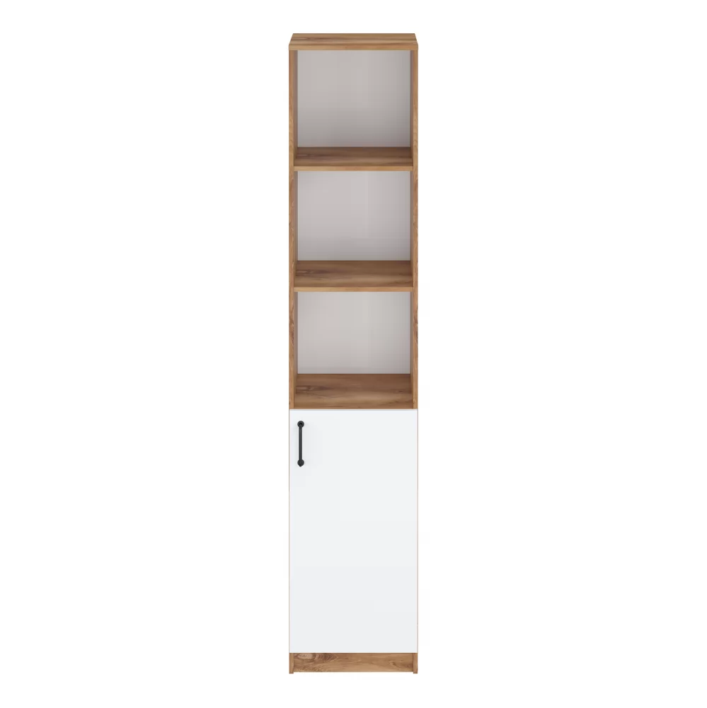 Стеллаж Сеул совмещает в себе 2 функции - открытые полки для декора или часто необходимых вещей и практичные закрытые полки - для того, что Вы не хотите показывать в интерьере.