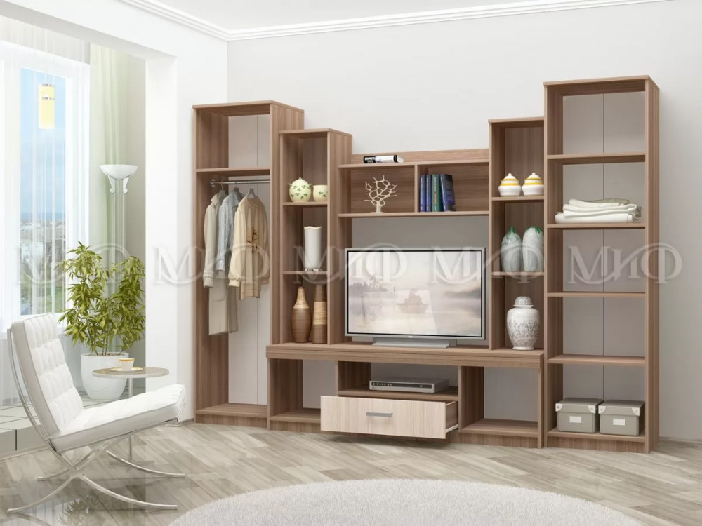 Ширина (мм): 3000 Высота (мм): 2220 Глубина (мм): 590 Материал: ЛДСП Цвет: Дуб беленный/Венге, Ясень шимо светлый/Ясень шимо темный Вес, кг: 226.18 Коллекция: Атлантида Ниша под ТВ: 1100х850 мм