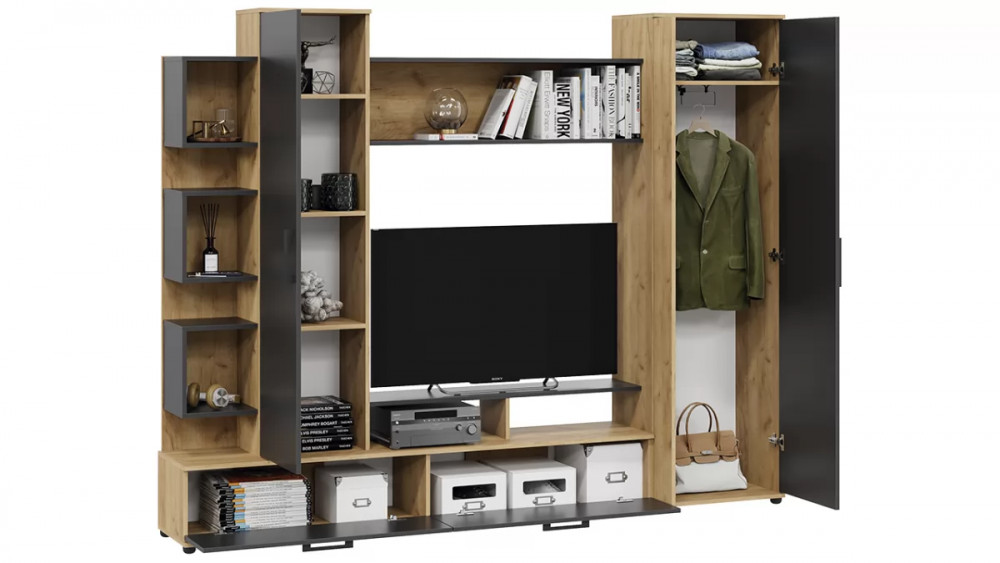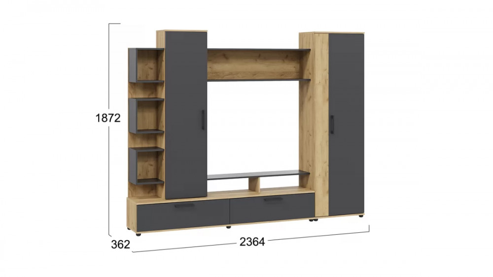 Стенка «Дакота» Дуб Крафт золотой, Антрацит в Покачах