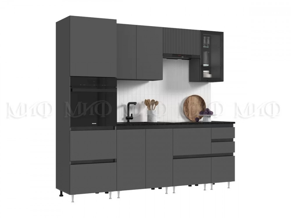 Кухня Техно-6 2,4м (Графит/Графит софт) в Покачах
