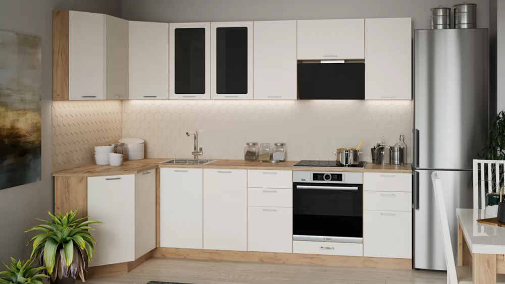 Модульная кухня «Габриэлла» Дуб крафт золотой/Крем в Покачах