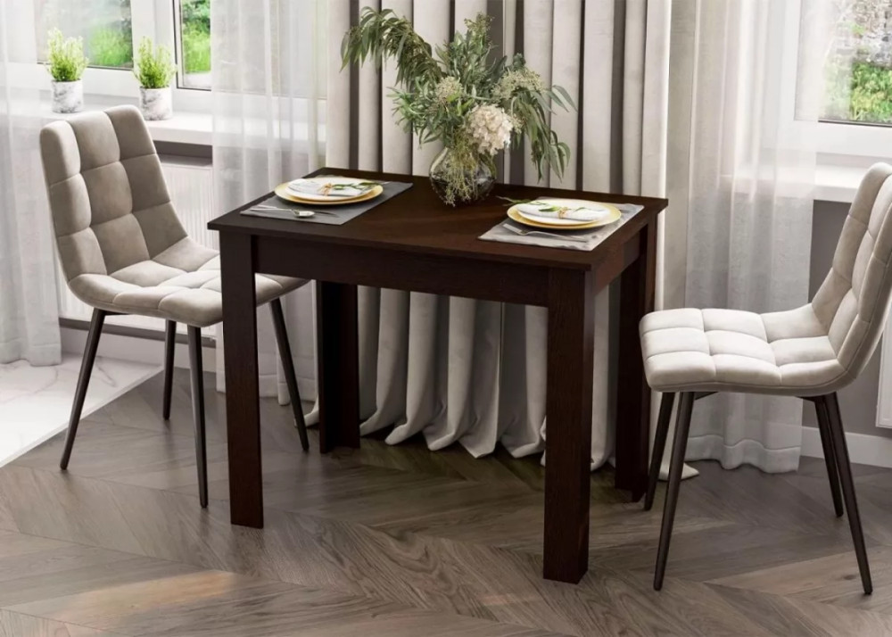 Размеры (мм):ширина - 900,глубина - 600,высота - 740.Материалы: ЛДСП.Цвет: Дуб Венге.Технические характеристики:Нераскладной кухонный стол с прямоугольной столешницей.Имитация текстуры древесины.Рассчитан на 4 человек.Надежная столешница, устойчивая к воздействию внешней среды.Прочные полые опоры.Объем: 0,025 м3.Производство: Россия.Вес: 14 кг.