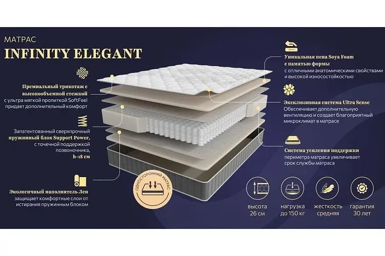 Матрас INFINITY ELEGANT 1800*2000мм (Пена/лен, ср.жесткий, h 26см)