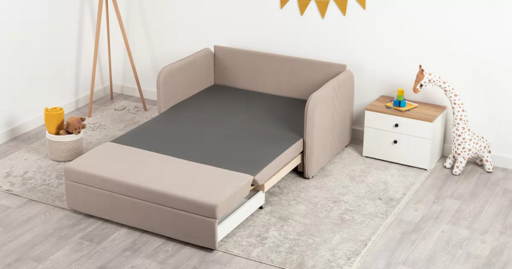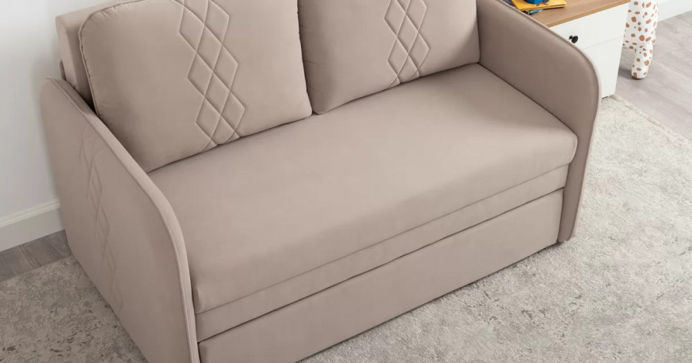 Стильный компактный диван для детской и гостиной. При своих скромных размерах он трансформируется в полноценное спальное место для детей и подростков. Лаконичный дизайн в виде декоративной отстрочки подчеркивает фактуру велюра, а небольшие размеры позволят разместить его в любом пространстве.