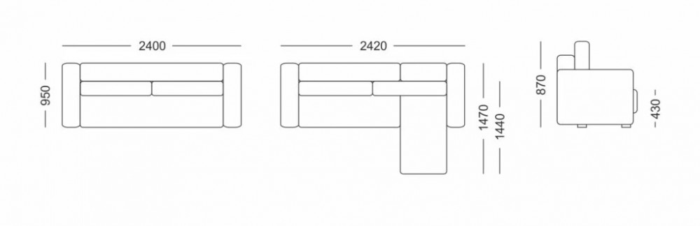 2400х950х870 мм