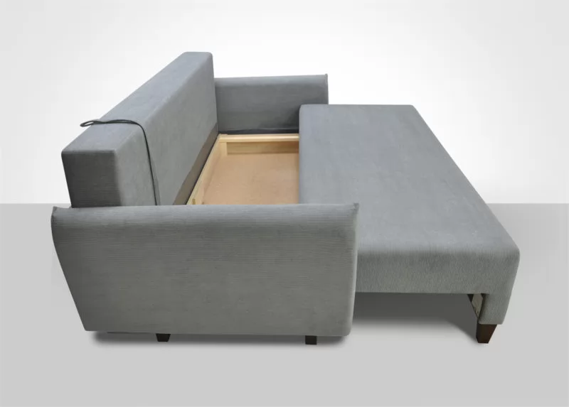 Стиль “ЛОФТ”. Узкие подлокотники, комфортные подушки со съемными чехлами, широкое спальное место.