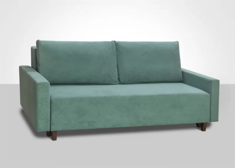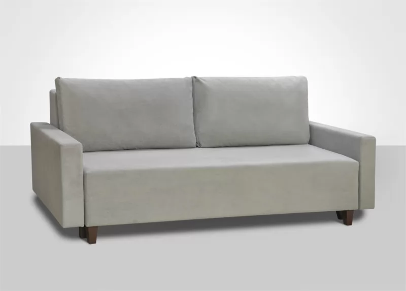 Классический минимализм. Узкий подлокотник, комфортные подушки со съемными чехлами, широкое спальное место.