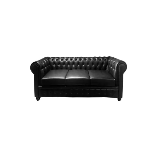 Роскошный и изящный прямой диван "Честер 3D" с подлокотниками и обивкой кожзам (каретная стяжка, без механизма раскладывания).