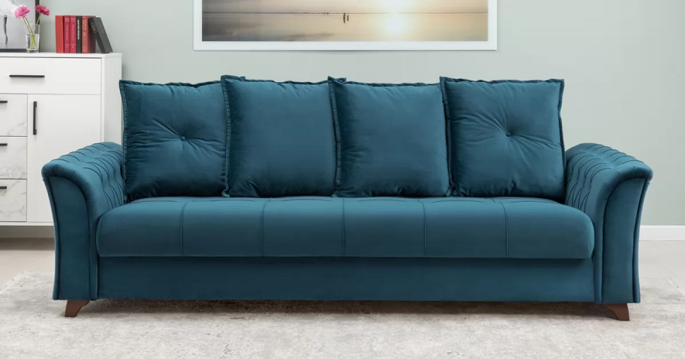 Габаритысложенный (Д x Г х В, мм): 2450 x 1060 x 890спальное место (Д x Ш, мм): 1950 x 1310высота посадки (мм): 460глубина сиденья (мм): 540максимально допустимая нагрузка: 80 кг на одно посадочное место, 100 кг на одно спальное местоМеханизм трансформации-Книжка с 0 стенойБельевой ящик-есть  перегородкой по центру (2 отделения)размер отделения (Д x Ш, мм): 890 x 840 x 200каркас: фанерадеревянный брус