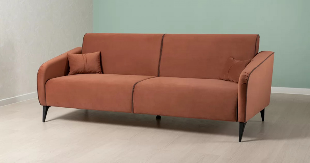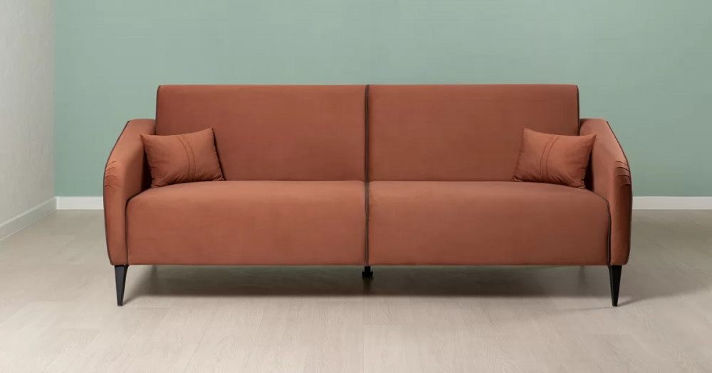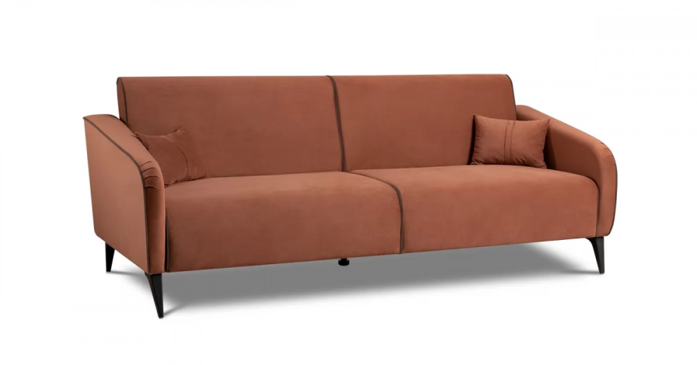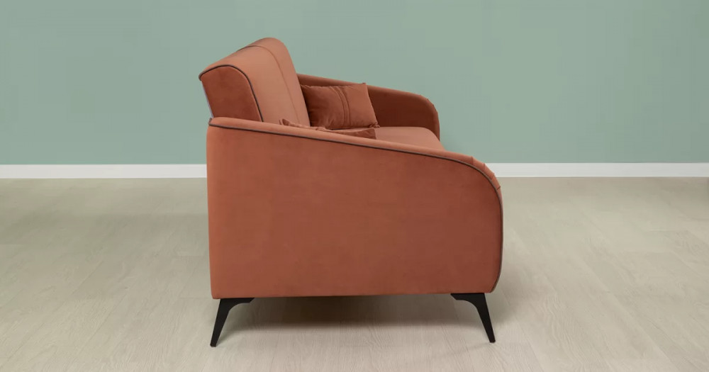 ДВПдекоративные подушки, шт: -2наполнитель подушек: -крошка ППУ и полиэфирное волокно «шарики»материал опор: металлцвет опор: черныйвысота опор (мм): 165ДекорСпинка и сиденье разделяются пополам двойным кантом по центру и одинарным по краям сидения, для придания одной единой формы. Подлокотники с изгибом на лицевой стороне и мягкими закругленным углом со складками, с выраженным контрастным ровным кантом по внешнему контуру изделия и изогнутой линией канта.Назначениев гостиную