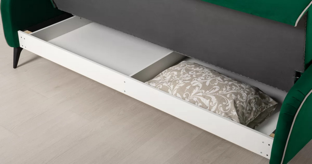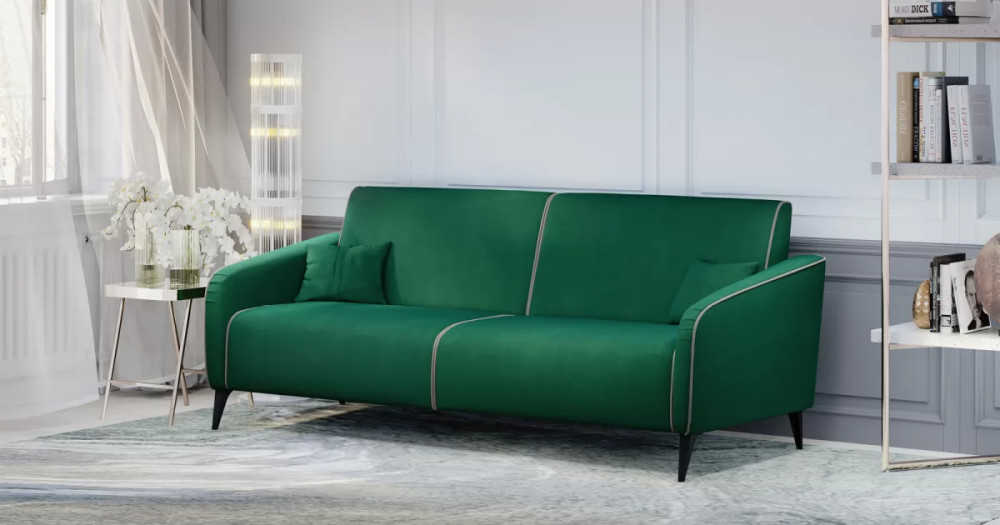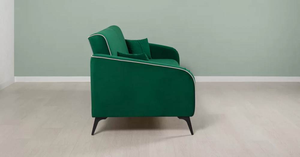 Габаритысложенный (Д x Г х В, мм): -2210 x 910 x 860разложенный (Д x Г х В, мм): -2210 x 1130 x 690спальное место (Д x Ш, мм): -1920 x 1130высота посадки (мм): -460глубина сиденья (мм): -590высота спинки (мм): -450высота подлокотника от сиденья (мм): -150-220максимально допустимая нагрузка: -80 кг на 1 посадочное местоМеханизм трансформации-КнижкаБельевой ящик-есть с перегородкой по центру (2 отделения)размер отделения (Д x Ш, мм): 740 x 885 x 885Варианты исполнения-5 артикуловсочетание тканей только как на фотоМатериалыосновная ткань: -Velutto (велюр)выполняется в тканях: Velutto 33 (темно-зеленый малахитовый)/Velutto 08 (светлый кварцевый серый)каркас: фанера деревянный брус ДСП ДВПдекоративные подушки, шт: -2наполнитель подушек: -крошка ППУ и полиэфирное волокно «шарики»материал опор: металлцвет опор: черныйвысота опор (мм): 165ДекорСпинка и сиденье разделяются пополам двойным кантом по центру и одинарным по краям сидения, для придания одной единой формы. Подлокотники с изгибом на лицевой стороне и мягкими закругленным углом со складками, с выраженным контрастным ровным кантом по внешнему контуру изделия и изогнутой линией канта.Назначениев гостиную в молодежную в гостевую комнату в кабинет в офисТребуется ли сборка-даУпаковкаколичество коробок, шт: 2общий вес с упаковкой, кг: 58,1