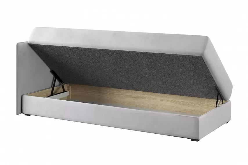 Тахта MIA — многофункциональная модель с двумя мягкими спинками, формирующими угол. Современный дизайн и качественное исполнение позволяют сделать ее уголком уюта как в спальне, так и в гостиной. Тахта оборудована односторонним несъемным матрасом с пружинным подъемным механизмом и вместительным ящиком для белья, что экономит пространство и идеально подходит для хранения различных вещей.