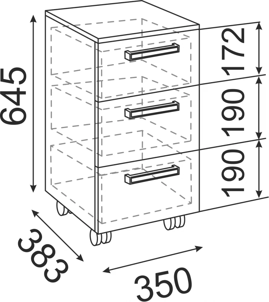 1. Тумба имеет 3 выдвижных ящика.