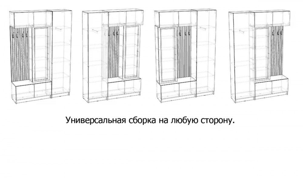 • Габариты: 1550 (ширина) х 414 (глубина) х 2364 (высота) мм.
