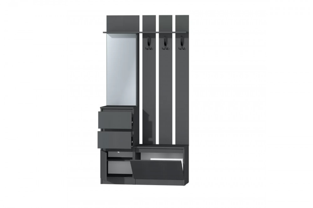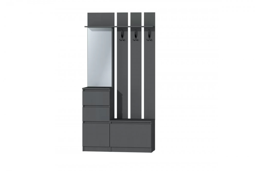 Данная прихожая имеет современный вид, которая впишется в любой интерьер. У данной прихожей 2 выдвижных ящика, 1 распашная и 1 откидная створка, отдел с крючками для верхней одежды. Ящики на шариковых направляющих полного выдвижения размером 300 мм., откидная створка открывается с помощью газлифта. Данная прихожая без ручеек, все створки и ящики открываются с помощью захвата рукой. В отделе с распашной створкой имеется посередине полка (для невысокой обуви), в отделе с откидной створкой можно располагать высокую обувь. Прихожая входит в модульную систему с разнообразным набором модулей: шкафы и кровати разных размеров, письменные столы, комоды, тумбы под ТВ. Благодаря этому можно оформить интерьер всей квартиры в одном стиле.