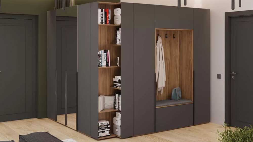 Прихожая «Порто» № 5 Яблоня Беллуно, Графит софт в Покачах