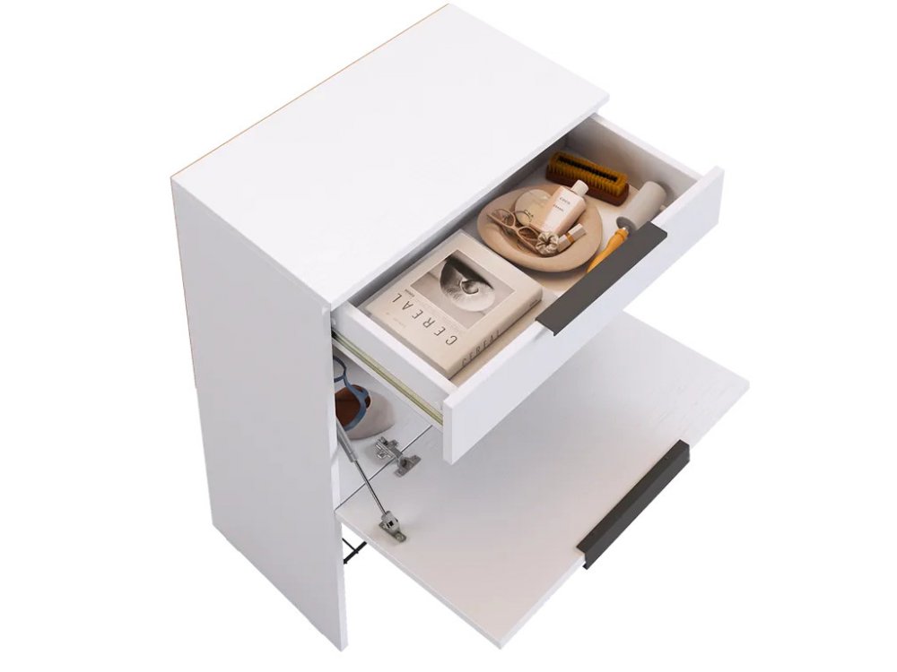 Большая секция для хранения открывается с помощью газлифта, что обеспечивает удобный доступ к содержимому и легкость в использовании. Сетчатая полка для обуви позволяет аккуратно разместить обувь, обеспечивая вентиляцию и удобство.