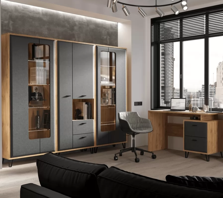 Вместительный и функциональный вариант для гостиной или кабинета.