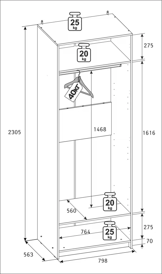 Ширина (мм): 798 Высота (мм): 2305 Глубина (мм): 563 Материал: ЛДСП Цвет: Белый Коллекция: Харрис