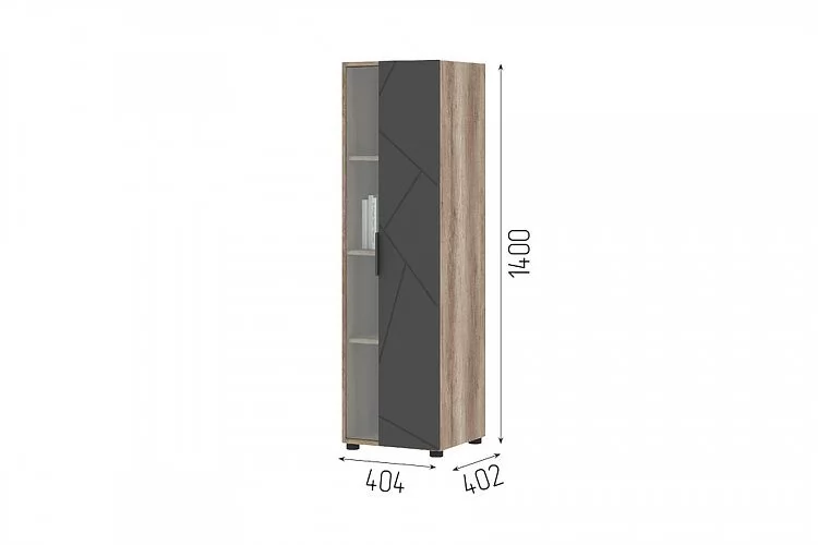 Высота, мм-1400Ширина, мм-404Глубина, мм-402Вес, кг-33.2Расположение-УниверсальноеМатериал корпуса-ЛДСПМатериал фасада-МДФ, стеклоЦвет корпуса-КоричневыйЦвет фасада-Темно-серыйЦвет корпуса изготовителя-Дуб каньонЦвет фасада изготовителя-Софт графитВид установки-Напольный/настеныйКоличество дверей-1Полки-Есть
