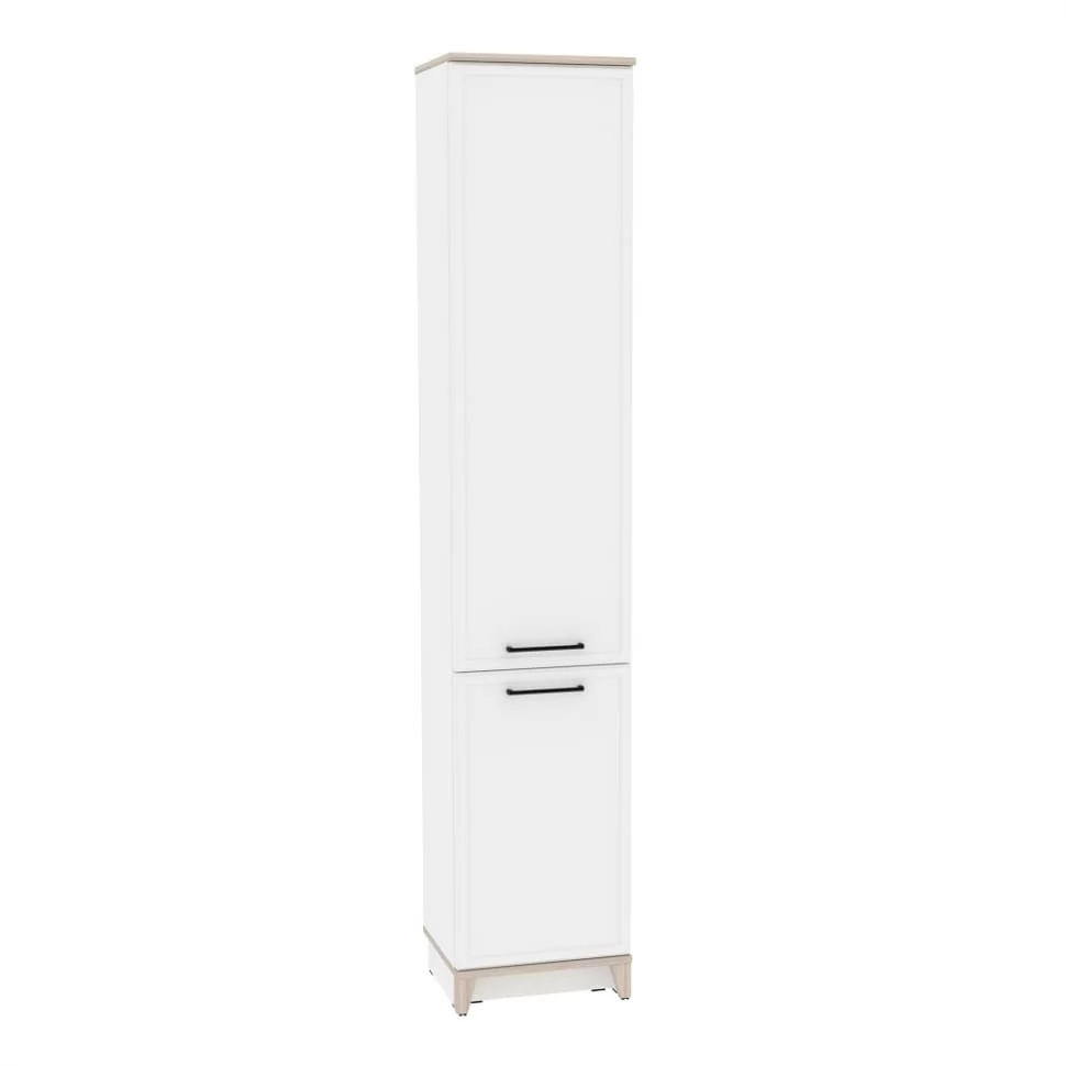 Мебель AURELIO представляет собой классическую мебель в современном исполнении. Корпус мебели изготовлен из высококачественного ЛДСП толщиной 16 мм, что обеспечивает прочность и долговечность конструкции. Фасады выполнены из МДФ с применением профиля, что придает им изысканный и стильный вид. Особое внимание стоит уделить рамочным фасадам шкафов, которые украшены стеклянными вставками и металлическими черными ручками. Это сочетание материалов придает мебели особый шарм и элегантность.