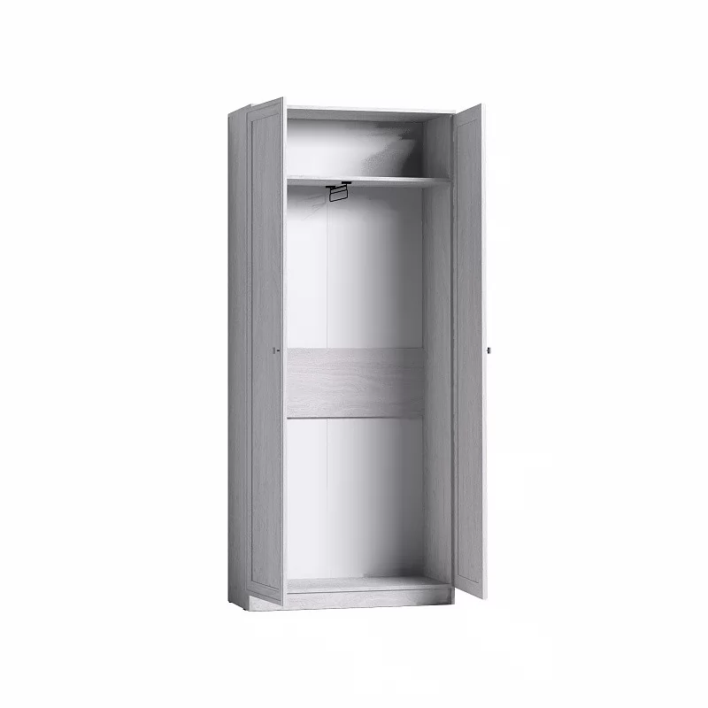 Особенности -Рамочные фасады из профиля МДФ -Металлические ручки -Крепится на стену за подвесы -Выдвижная штанга для одежды