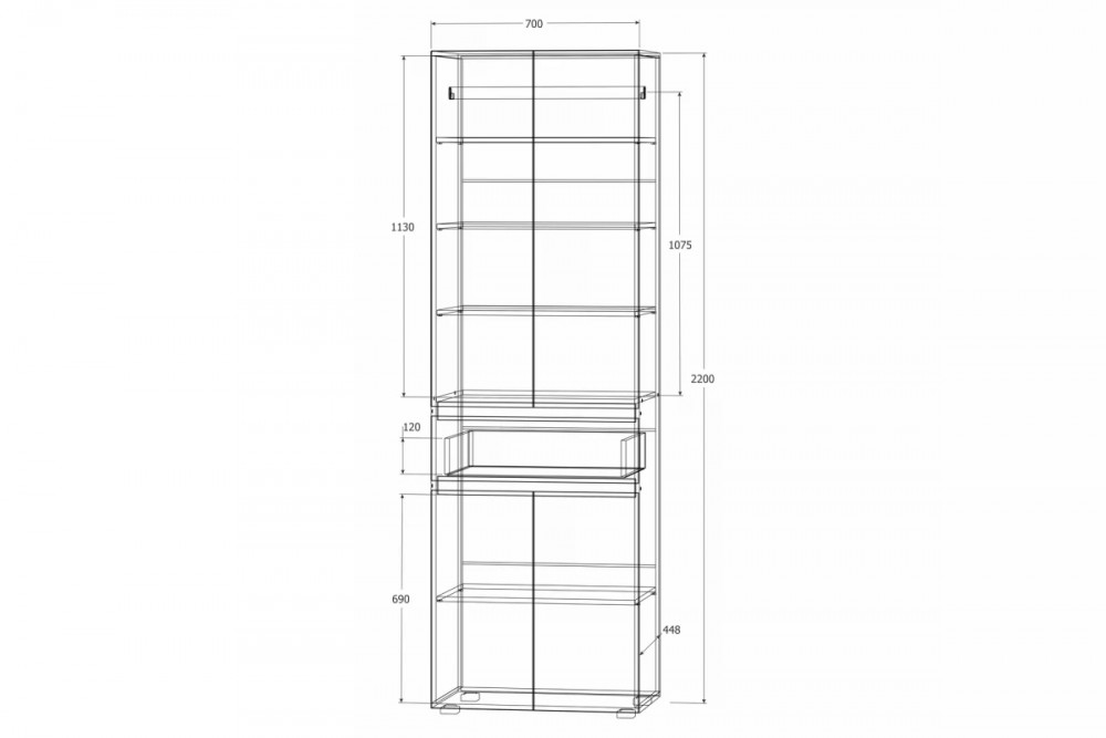 Ширина (мм): 700 Глубина (мм): 467 Высота (мм): 2200 Материал корпуса: ЛДСП Материал фасада: ЛДСП Кромка: ПВХ 0,4 мм Опора: ОСК-20К Тип петли: накладная Ручки: интегрированные Направляющие: шариковые Глубина ящика: 400 Вес, кг: 61 Объем, м3 0,125 Количество упаковок: 3 Ориентация сборки: односторонняя Производство: г. Пенза Срок службы: 10 лет