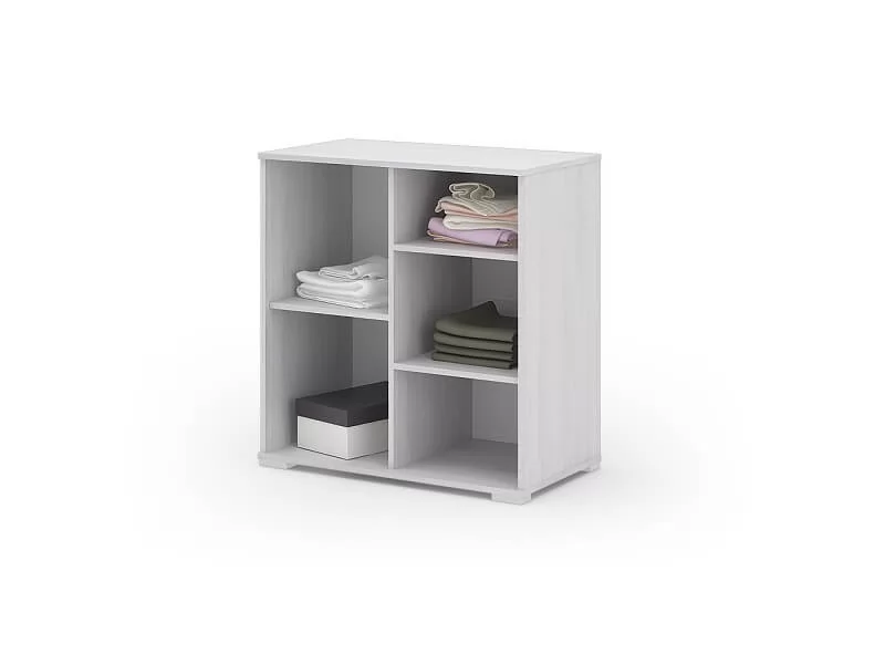 Комод КМ 021 входит в модульный ряд спальни Сальма. Комод Сальма современный и оригинальный, благодаря необычным фасадам, выполненным в декоре Белый глянец с графическим узором линейки и вставкой из стекла черного цвета-лакобель. Комод КМ 021 состоит из 2-х открывающихся дверок и нескольких полочек внутри.