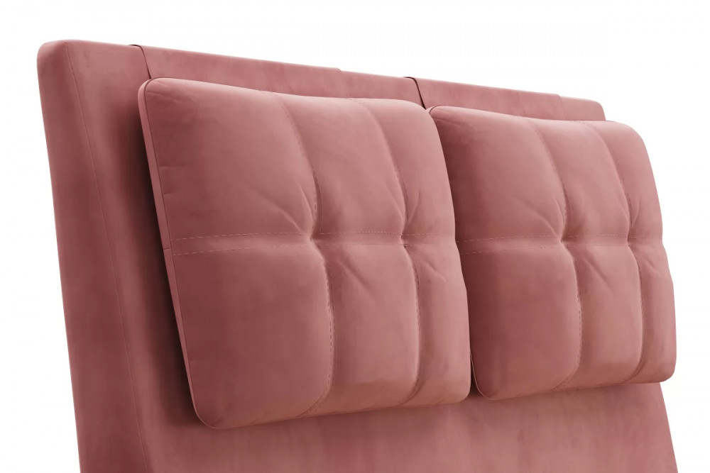 Кровати выполнены в нейтральных и в ярких тканях велюр, что позволяет подобрать подходящий вариант почти под любой интерьер. В качестве декора применяются декоративные подушки на изголовье.