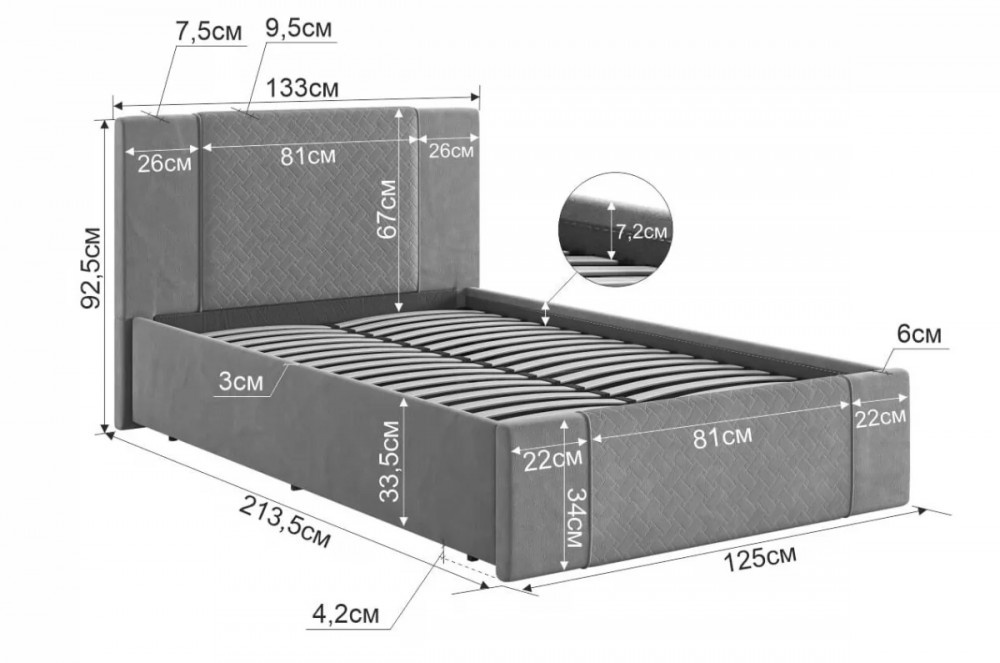 Материал изголовья: ЛДСП, ткань