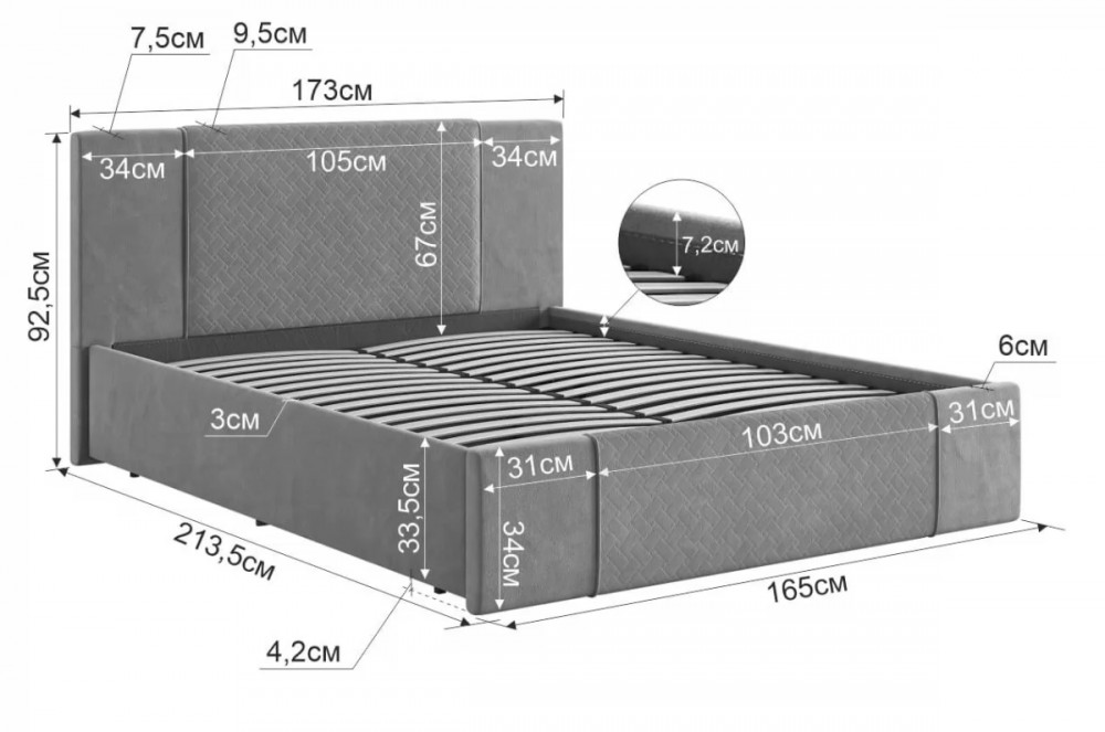 Рекомендуемый размер матраса: 1600х2000 мм