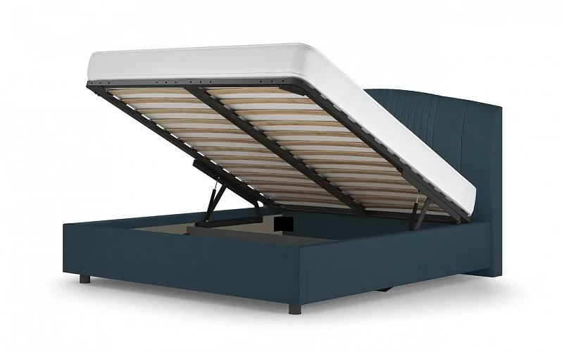 Среди преимуществ кровати можно выделить наличие бельевого вместительного короба, в котором удобно хранить различные вещи и постельные принадлежности. Особую прочность кровати придает металлический держатель основания из стали 2 мм., а надежный газлифт обеспечивает легкий доступ к бельевому коробу.