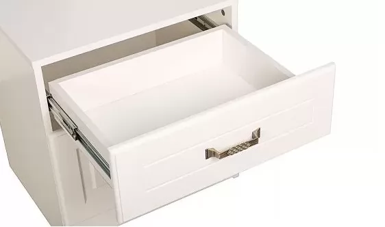 Прикроватная тумба "Ливерпуль" №08.146 включает в себя выдвижной ящик и объемную нишу за распашной дверцей.