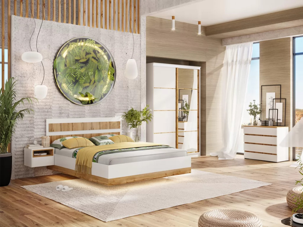 Спальный гарнитур Дубай Белый жемчуг/Дуб Вотан в Покачах