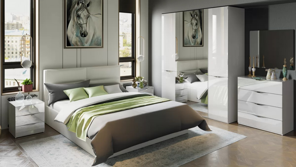Спальный гарнитур «Глосс» №7 Белый Жемчуг, Белый глянец в Покачах