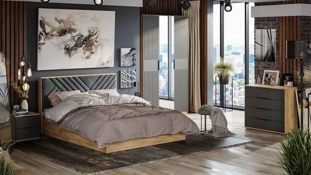 Спальный гарнитур «Хилтон» №1 Дуб Крафт золотой, Графит матовый в Покачах