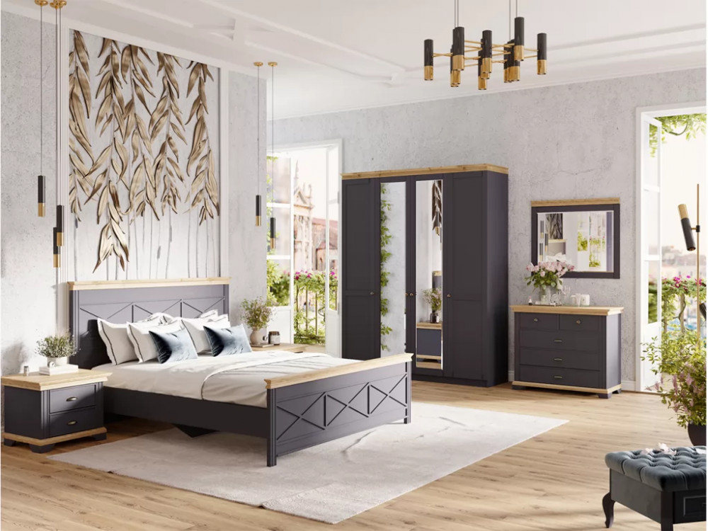 Спальный гарнитур Лиана-1 Дуб Крафт Золотой/Графит в Покачах