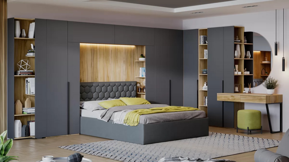 Спальня «Порто» Яблоня Беллуно, Графит софт в Покачах